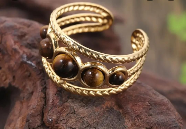 Bague en Oeil de tigre - ajustable - en acier inoxydable