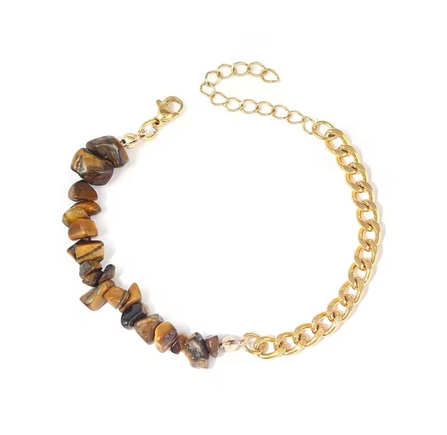 Bracelet Pierres irrégulières en Oeil de tigre - acier inoxydable