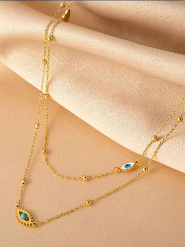 Collier pendentif Oeil bleu - couleur or - en acier inoxydable