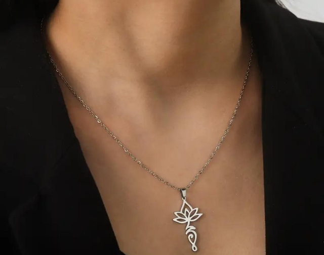 Collier fleur de lotus - en acier inoxydable - couleur acier
