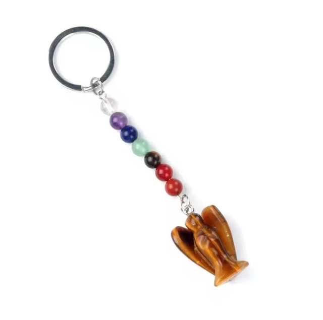 Porte-clés ange en pierre naturelle 7 chakras