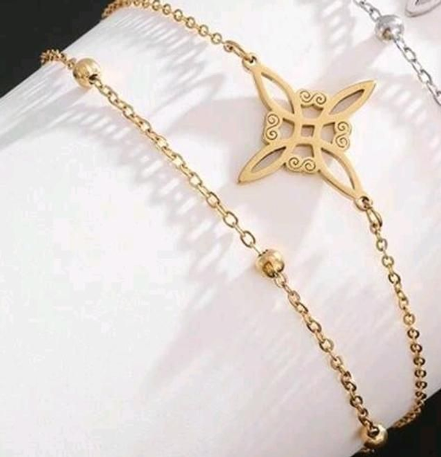 Bracelet double tours - noeud de sorcière - couleur or - en acier inoxydable